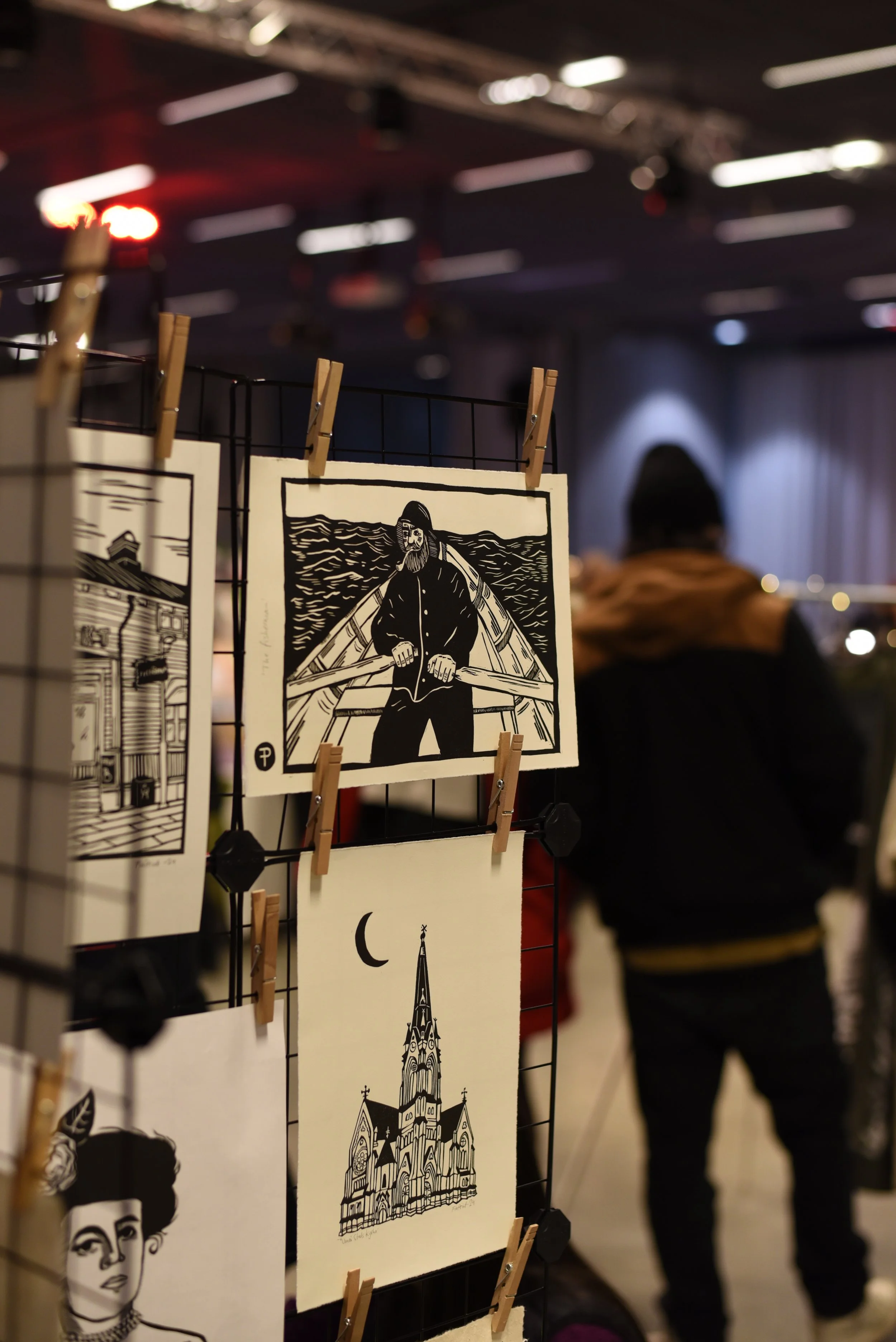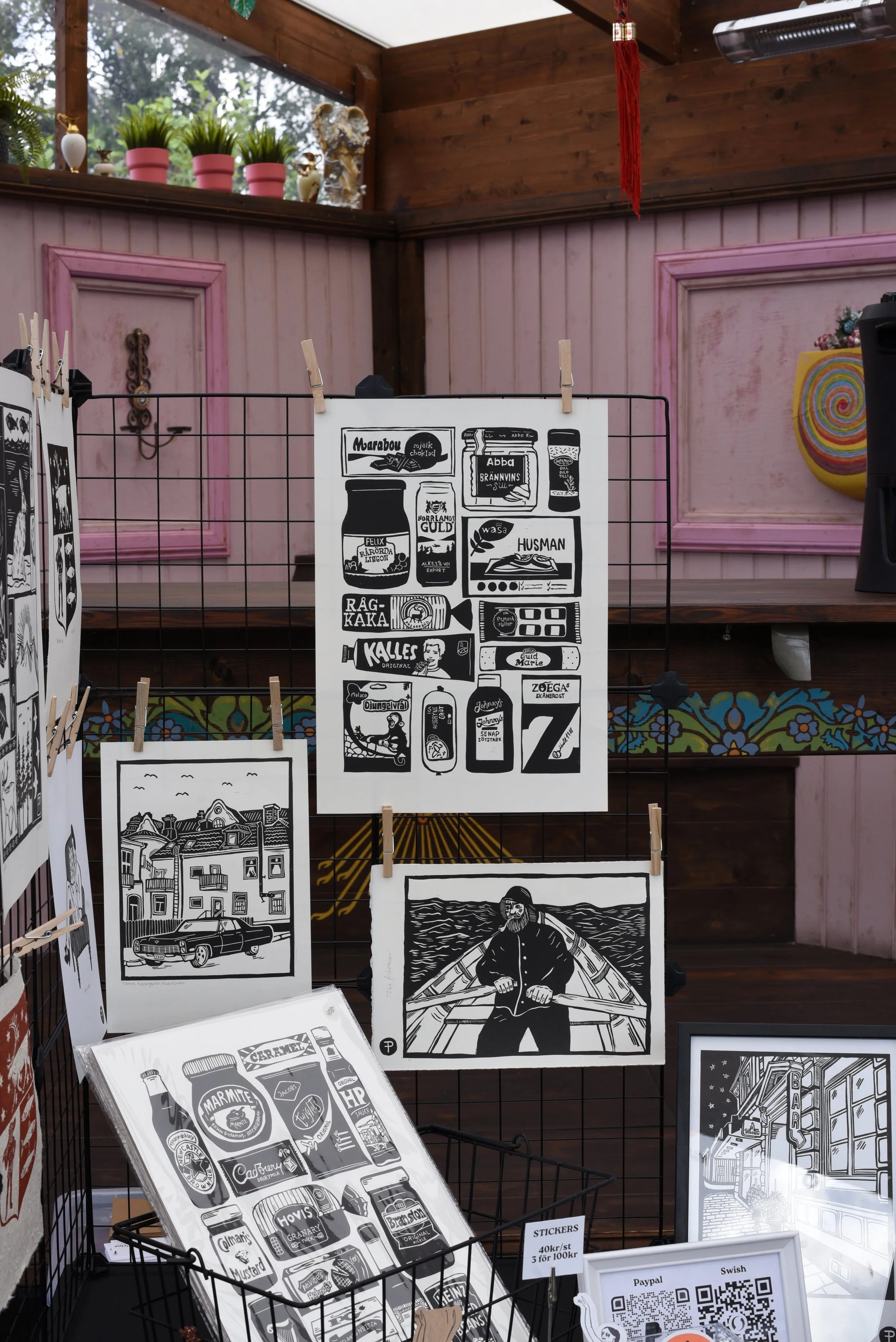 I draw, carve and print by hand in my home studio outside of Umeå.